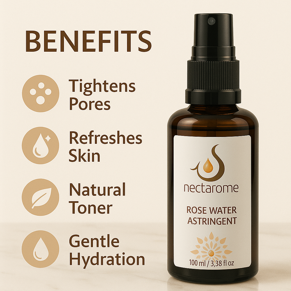 Our Rose Water is the perfect solution for naturally toning, refreshing, and moisturizing your skin. Renowned for its soothing and astringent properties, it helps soften and calm the skin, making it an ideal addition to your skincare routine.
